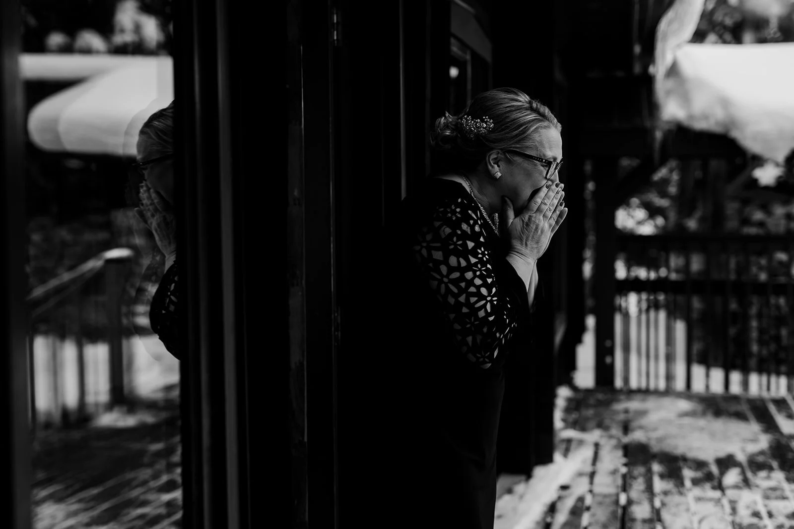 We had Bill stand outside the front door (so the setting was wintery and lovely… and also mirrored Juliet & Peter in Love Actually)... Carlyn prepped Sarah for the “first look”, the door opened, the music started, and WELL, we’ll just leave you with these photos: